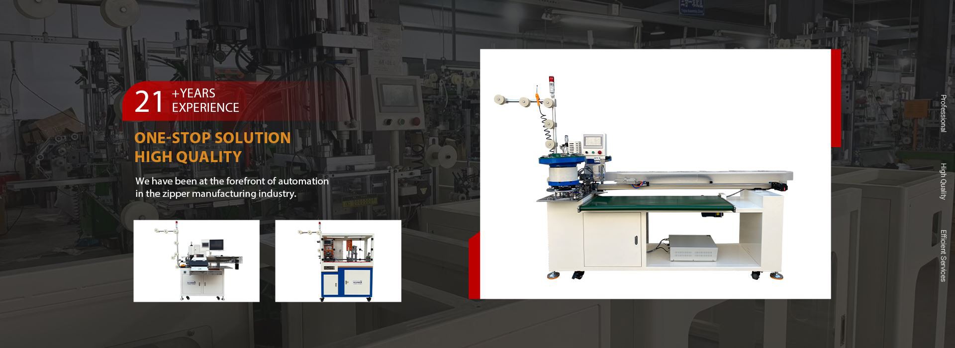 Ó bunaíodh muid i 2004, táimid ar thús cadhnaíochta an uathoibrithe sa tionscal déantúsaíochta zipper. Mar cheannródaí sa tSín, thugamar isteach an chéad mheaisín bearrtha miotail uathoibríoch agus stialladh fiacla, rud a chuir dlús mór ar uathoibriú táirgeadh zipper miotail ar fud na tíre.